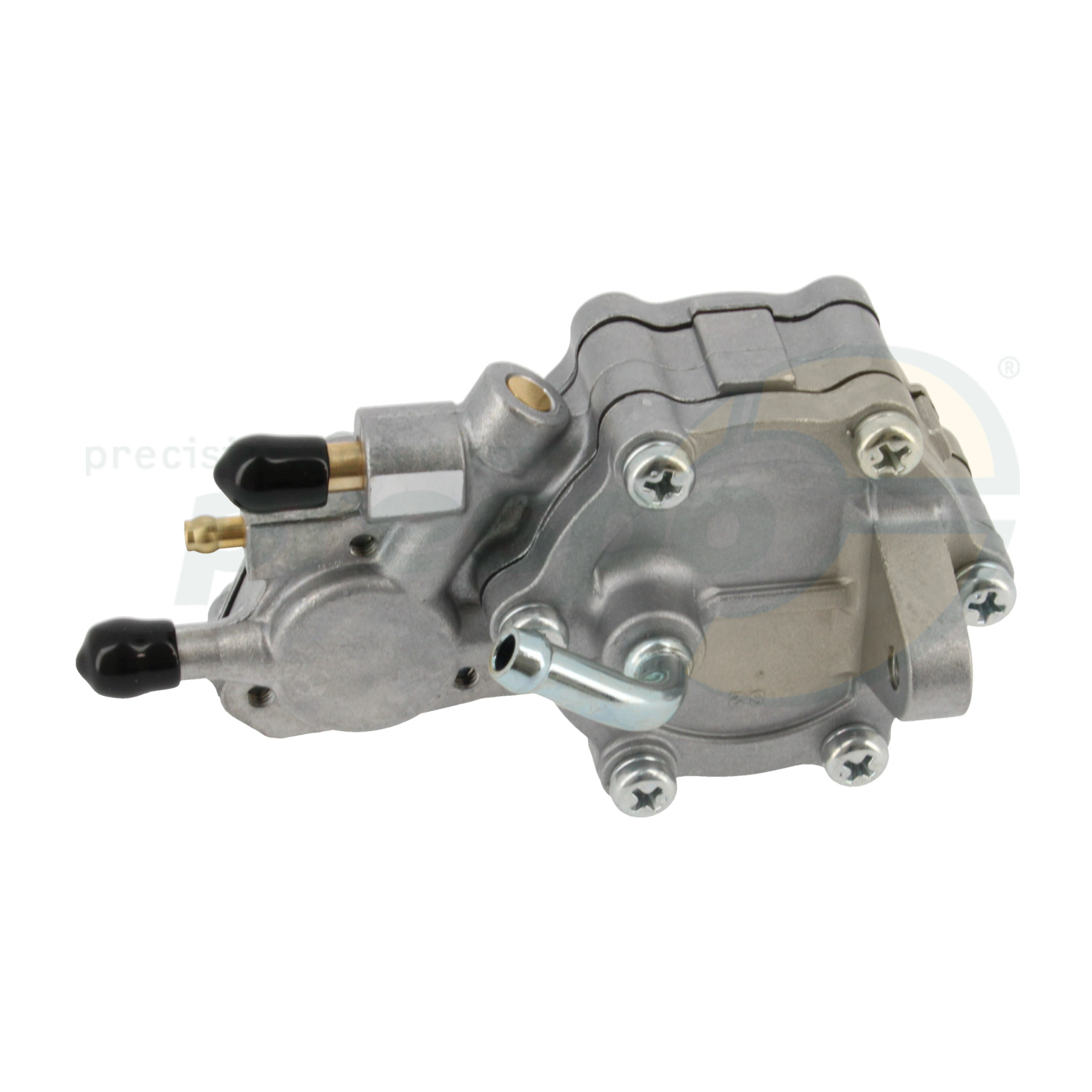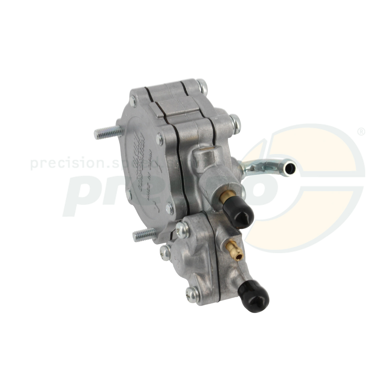 | maximale Literleistung pro Stunde:  35l/h Gewicht: 235 gr Die Pumpe arbeitet über den Unterdruck im Kurbelgehäuse. Durch die Auf- und Ab Bewegung des Kolbens entsteht ein wechselnder Unter- und Überdruck im Kurbelgehäuse. Die in der Pumpe integrierte Membrane nutzt dieses Wechselspiel zum Fördern des Benzines ohne dabei wichtige Energie zu verbrauchen. Der Typ DF 52-82 besitzt darüber hinaus ein Ventil für zurviel Druck welcher aus dem Kurbelgehäuse des Motors kommen kann. Evtl im Schubbetrieb des Motors. Das Ventil gleicht ungewollte Druckspitzen aus und sorgt für eine gleichmäßige Fördermenge der Pumpe. Die Pumpe besitzt einen Anschluß für den Unterdruck einen Anschluß für die Saugleitung und einen Anschluß für den Förderausgang |